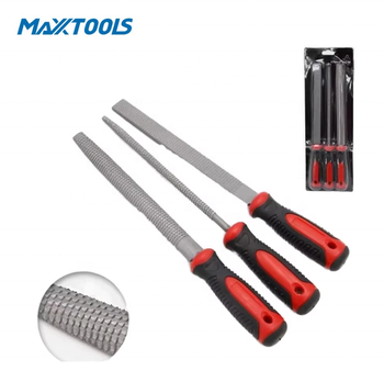 Juego de limas de acero al carbono de 3 piezas con mango PP + TPR, acabado arenado, limas redondas semiredondas y planas, OEM disponible